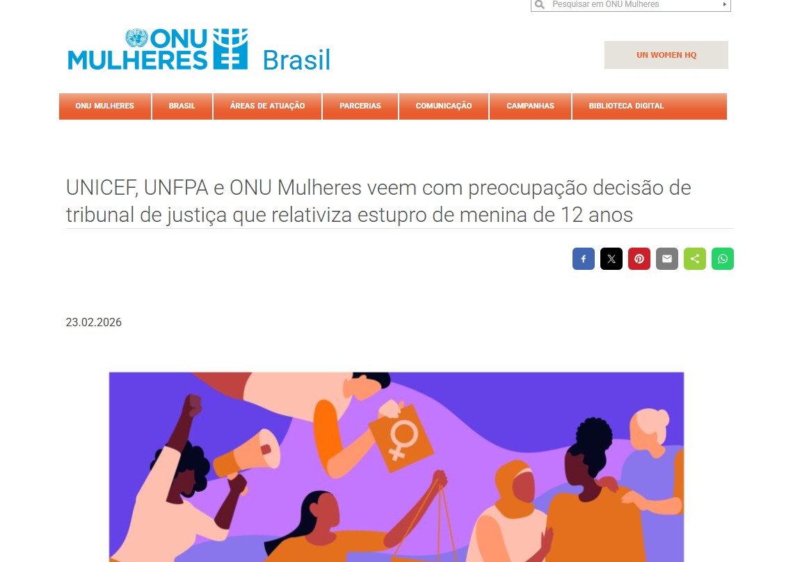 Diante disso, a ONU Mulheres se posicionou contra a decisão do tribunal e se colocou à disposição do governo brasileiro para colaborar com ações que promovam a proteção de crianças e adolescentes contra a violência, reforçando a importância do combate a esse tipo de abuso e da garantia de um ambiente seguro para o crescimento e desenvolvimento saudável da juventude.