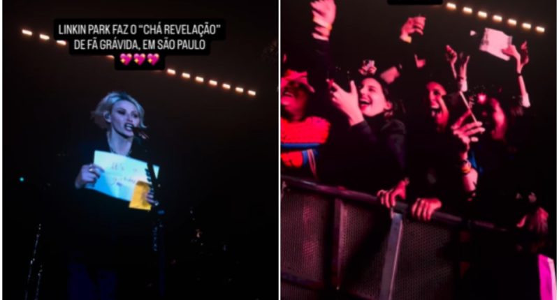 Linkin park surpreende fã e revela sexo de bebê em show